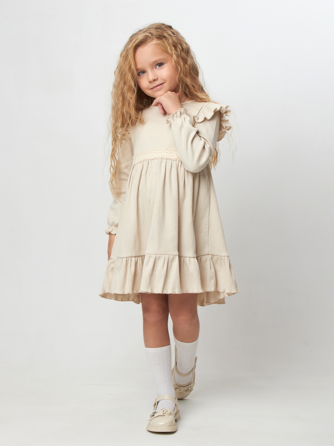 Теги: Платья детские из мулина оптом. 332. Платье детское из лапши, хлопок 100%, бежевое, р. 98,104,110,116 цена,отзывы официальный сайт "Стеша Иваново"